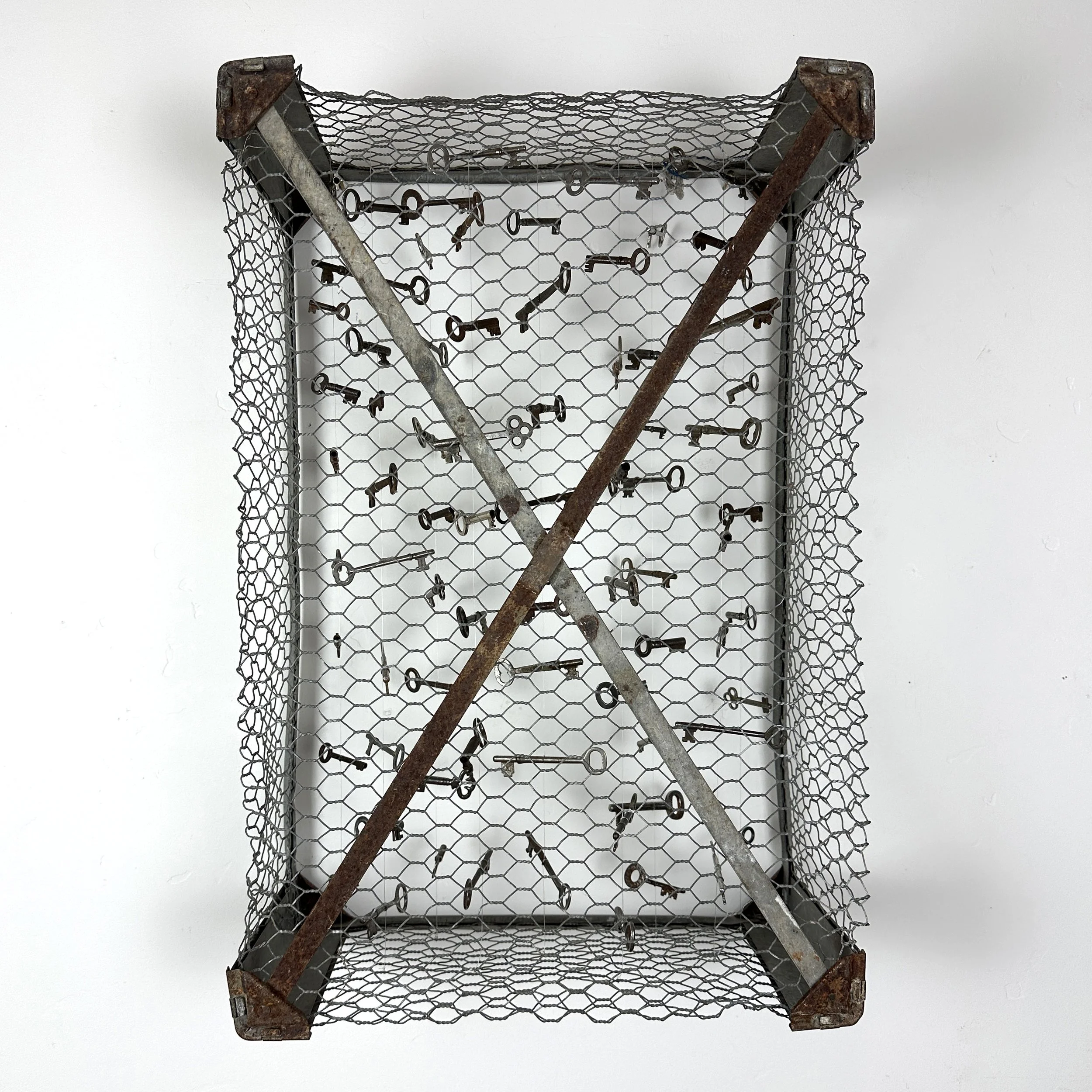 And last but not least: a remarkable home-made pet carrier that now contains a swarm of keys. Check out the handle and door latch!